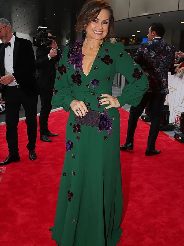 Lisa Wilkinson is all style and class in this beautiful green-and-floral red-carpet dress. And can you guess which TV chef is going with the flower theme in the background of this pic? It’s Miguel Maestre!