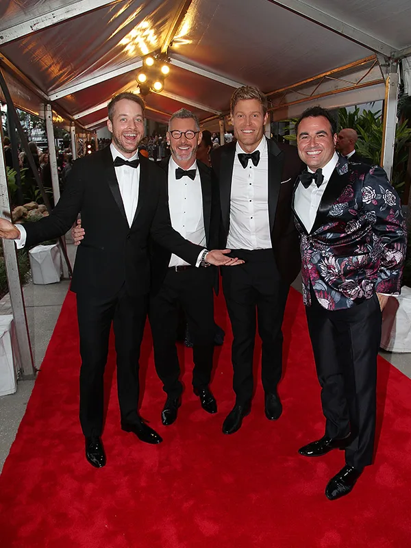 Hamish Blake, Barry Dubois, Chris Brown and Miguel Maestre are having a little too much at the Logies. (Psst: Wait until the afterparty, boys!)