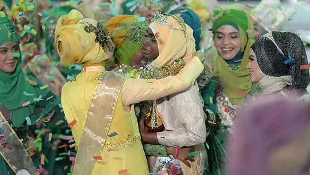 The pageant is held for Muslim women who are judged not only on their appearance (in modest Islamic dress) but also their piety, religious knowledge and understanding of the Koran.