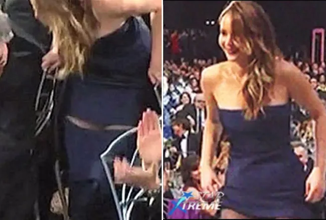 Jennifer Lawrence lost part of her skirt on her way to receive an Oscar.