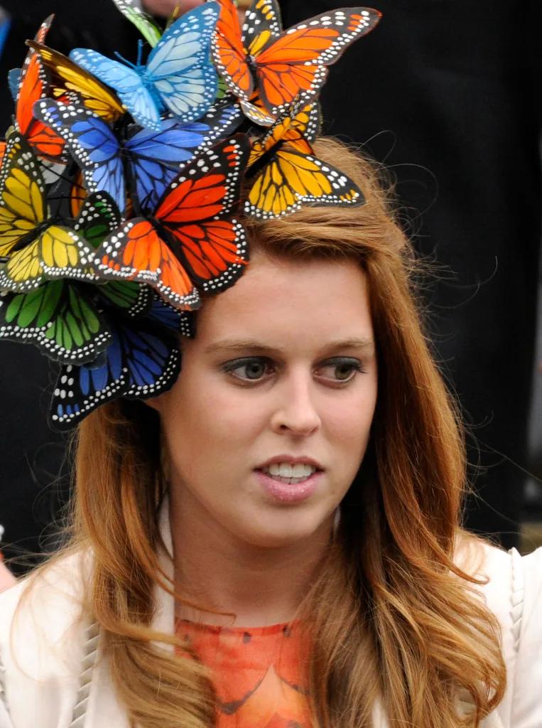 Then there’s the time she rocked up to the wedding of Peter Phillips and Autumn Kelly at Windsor Castle in 2018. Forget catching the bouquet – Beatrice would’ve had a tough enough time keeping an eye on these about-to-take-flight butterflies.