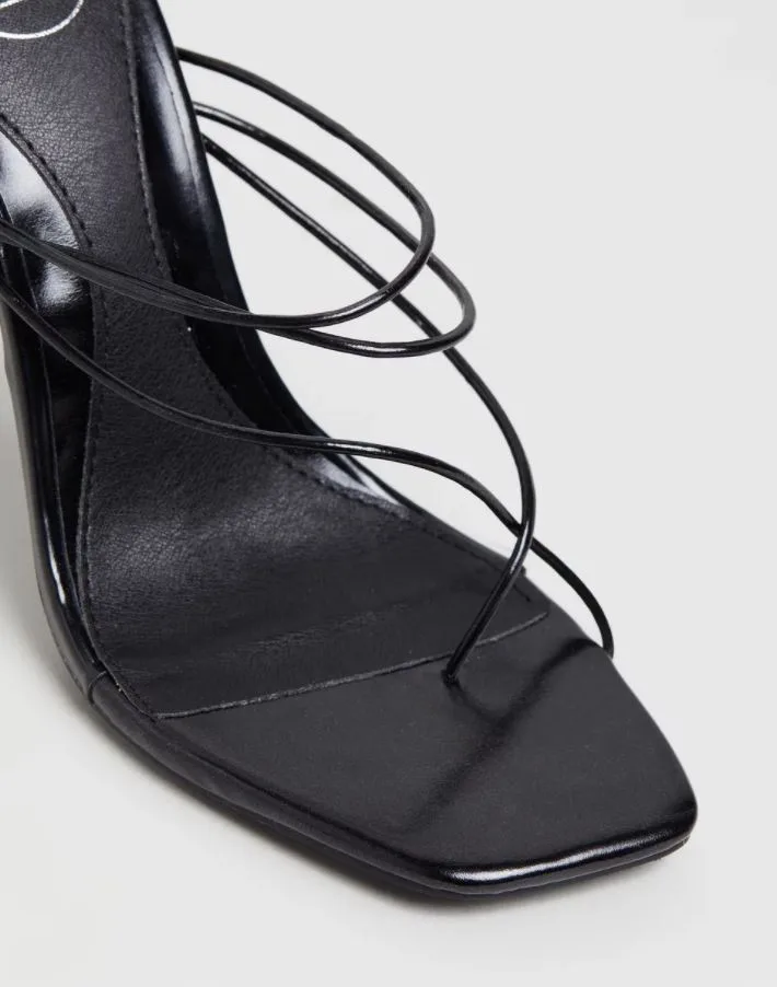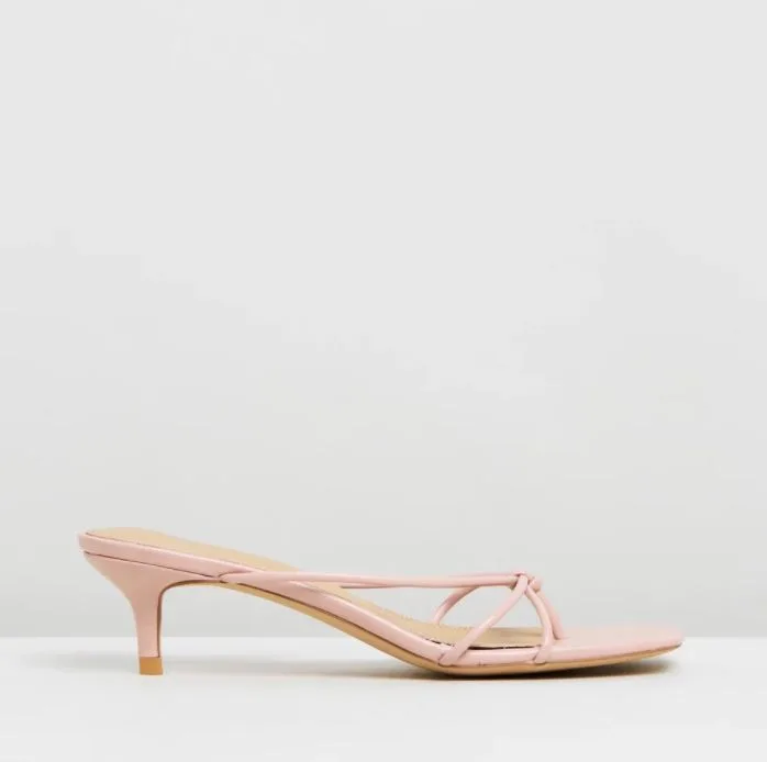 (The Iconic)If you’re not vibing the thong style, there are plenty of cute strappy heels that also provide that designer square-toe look.