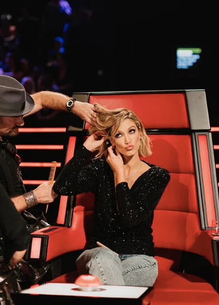 Delta’s outfit on the 2020 season premiere of The Voice was the definition of glamour. The oversized black blazer needed only a gold chain and a simple, yet sophisticated make up look to bring it to life. Obsessed.