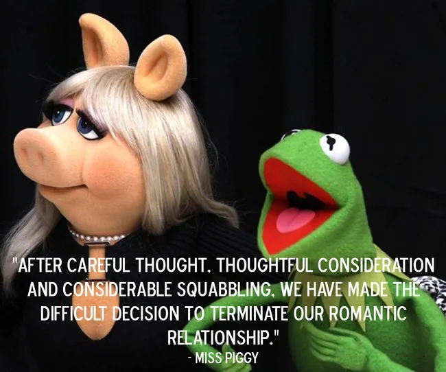 Miss Piggy’s statement on the break-up of her relationship to Kermit the Frog.