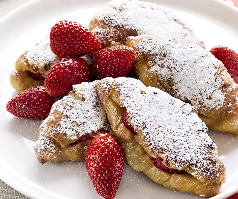 Why enjoy one French classic for breakfast when you can combine two? These french toast croissants are filled with fresh slices of strawberry and strawberry jam for a fruity, oozing centre.