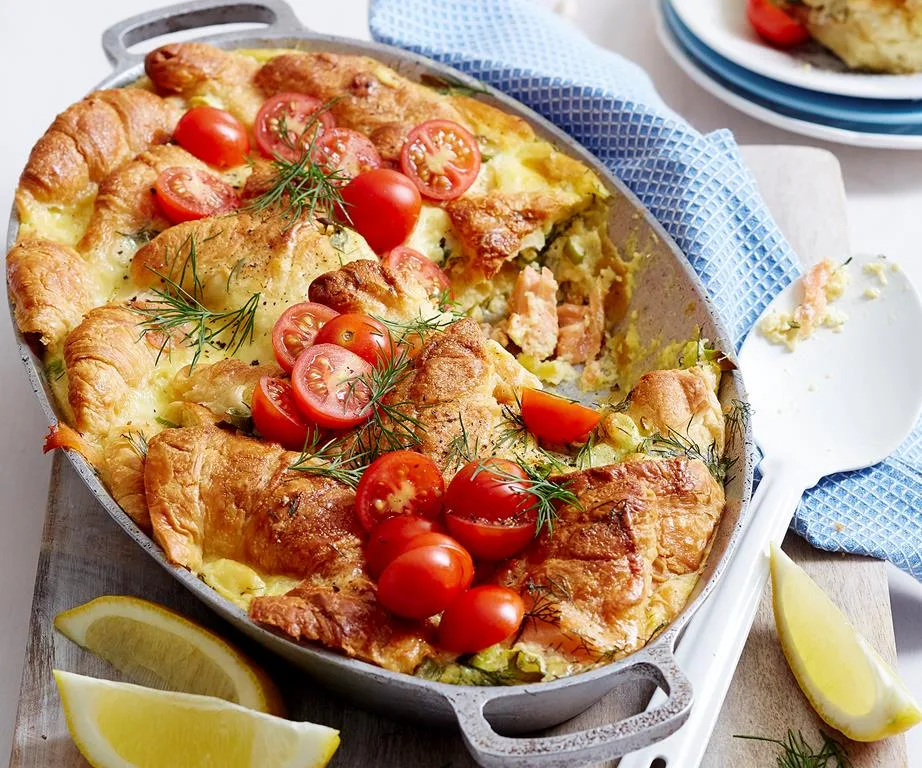 This one-pot wonder combines buttery French croissants with a creamy egg, cheese and salmon filling, ideal for sharing with friends and family at your next big breakfast or brunch spread.