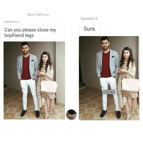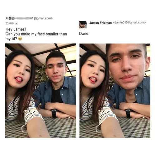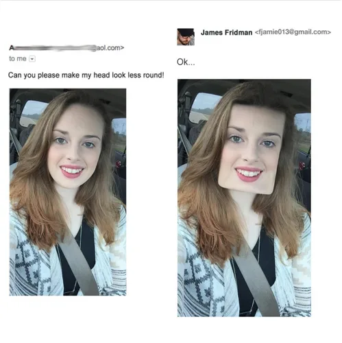 It’s too bad she didn’t specify to keep her boyfriend’s face the same size—especially since his body stayed the same. Too funny!